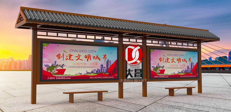 山東很多城市的公交候車亭設(shè)計(jì)風(fēng)格也為仿古風(fēng)格,古典雅致,與山東歷史的源遠(yuǎn)流長相符合。宿遷大昌有幸能夠參與山東公交候車亭的規(guī)劃設(shè)計(jì)和生產(chǎn)制作,感謝客戶對(duì)于我司方案設(shè)計(jì)的點(diǎn)贊,更感謝客戶對(duì)于我司產(chǎn)品質(zhì)量的認(rèn)可!