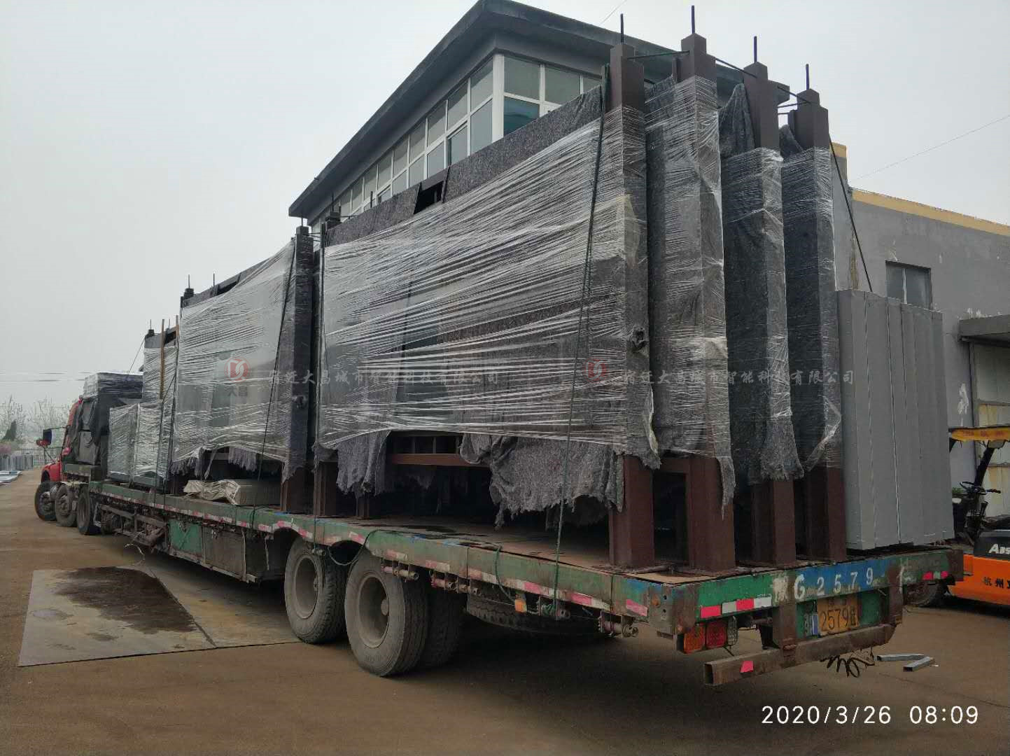 繼昨天第一車站臺裝完,工人又加班連夜裝了第二車,今天一早裝著滿滿一車公交站臺的貨車就已經整裝待發!