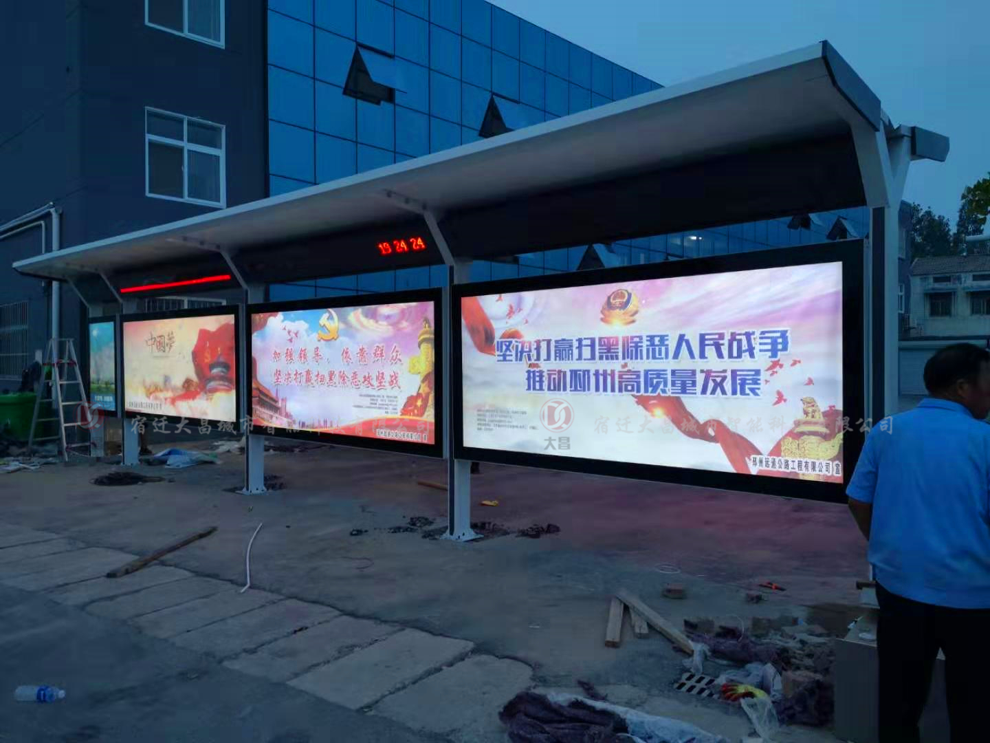 以下是江蘇邳州公交站臺(tái)候車亭安裝調(diào)試現(xiàn)場(chǎng)實(shí)景照片,請(qǐng)欣賞: