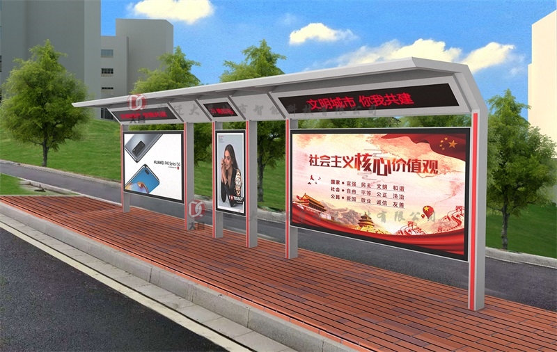 現代候車亭為新建道路施工項目,候車亭已成為城市公共交通必不可少的基礎建設之一。此次,宿遷大昌候車亭生產廠家制作的候車亭款式為經典現代款式,與新建道路周圍的建筑環境融為一體,不僅滿足很好地滿足市民公共出行的需求,還進一步提升了城市形象。