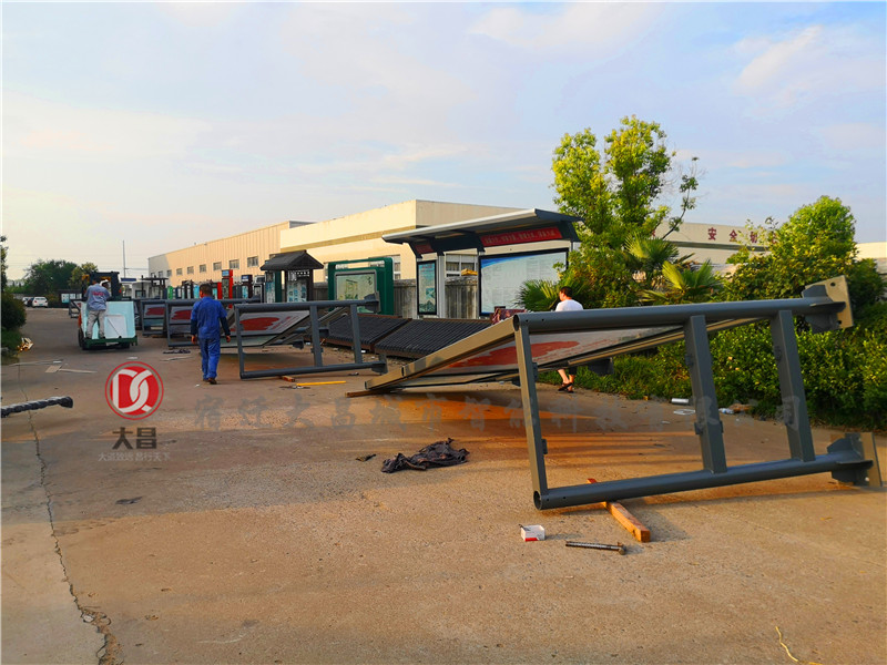 以下是宿遷大昌城市智能科技有限公司為長(zhǎng)春定制生產(chǎn)的公交候車亭發(fā)貨實(shí)景照片,請(qǐng)欣賞: