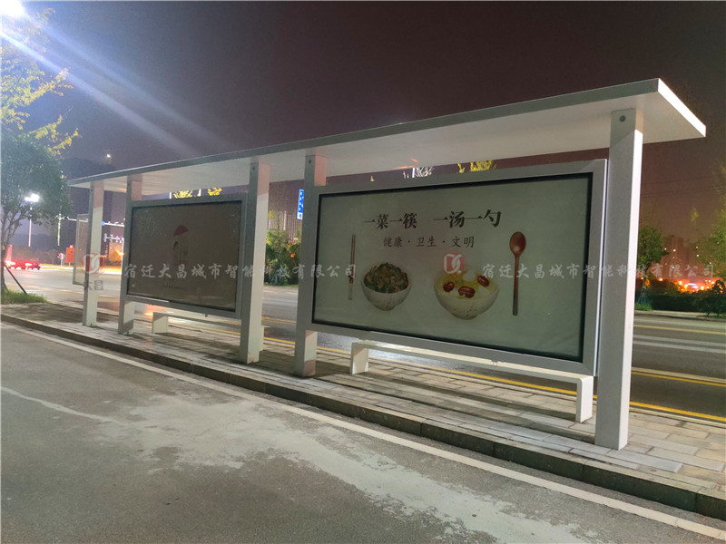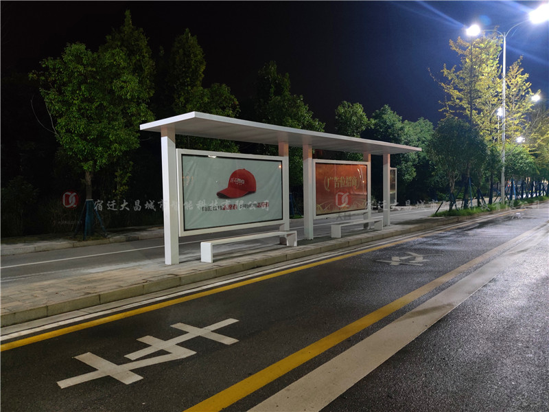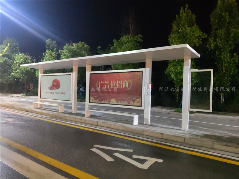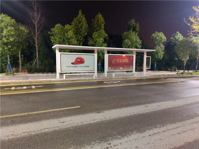 公交候車亭等附屬設施已經施工完畢。近日夜間,小編駕車實地探訪了公交候車亭的建設安裝效果。