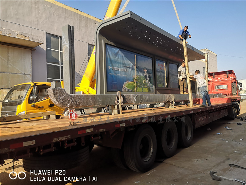 公交站臺候車亭發貨和安裝實景照片,請欣賞:
