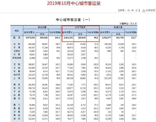 公交是中國(guó)無(wú)可爭(zhēng)議的、最大的公共交通服務(wù)平臺(tái)。根據(jù)交通運(yùn)輸部公開(kāi)的2019年10月中心城市客運(yùn)量,在統(tǒng)計(jì)的22個(gè)主要城市中,自今年年初累計(jì)的公共汽電車(chē)客運(yùn)量高達(dá)281億人次,為去年同期的98.3%。