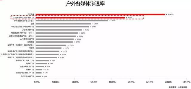 中商情報(bào)局的調(diào)查數(shù)據(jù)顯示,在眾多戶(hù)外媒介中,候車(chē)亭的滲透率僅次于公交車(chē)廣告,位居第二。
