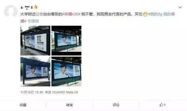 上個(gè)月,榮耀V30投放了大量候車(chē)亭廣告,配合代言人黃景瑜、肖戰(zhàn)自帶的流量,收獲了一大票小迷妹的心。產(chǎn)品正式發(fā)售首日,全平臺(tái)銷(xiāo)售額在短短3秒內(nèi)破億,候車(chē)亭廣告功不可沒(méi)。